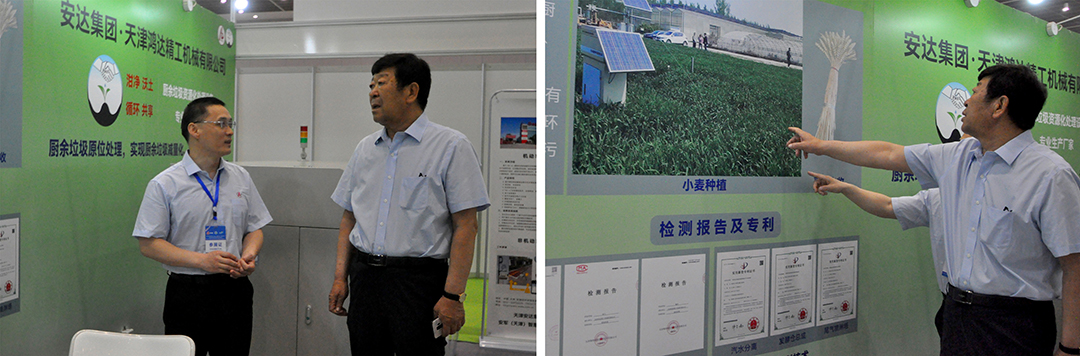 展會期間黨委書記、董事長崔洪金蒞臨安達展位,在產品介紹重點、技術要點、工作人員服務態度等多個方面給予工作人員詳細指導。崔洪金董事長還講到:隨著我國經濟的快速發展,國家對市容環境衛生工作越來越重視,每年環衛服務市場空間超過千億。十八大以來,全黨全國樹立和踐行“綠水青山就是金山銀山”理念的同時,怎樣將各種垃圾“變廢為寶”產生新能源、新動力,取之于大地,還之于土壤,保十八億畝良田生產出優質糧食,造福億萬百姓,是動員全國人民建設生態文明國家的一項大課題。本次展會為進一步推動環渤海地區綠色發展與生態文明建設搭建平臺,我們要抓住機會,突出自身優勢,不斷尋求突破,擴寬擴大市場,在助力國家循環共享積極發展,建設美麗中國層面上做出安達貢獻。